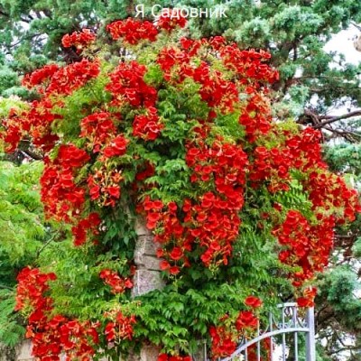 Кампсис красный любит солнечные места и выдерживает морозы до -29 °C. Его цветы напоминают яркие колокольчики, которые радуют глаз с июня по сентябрь.